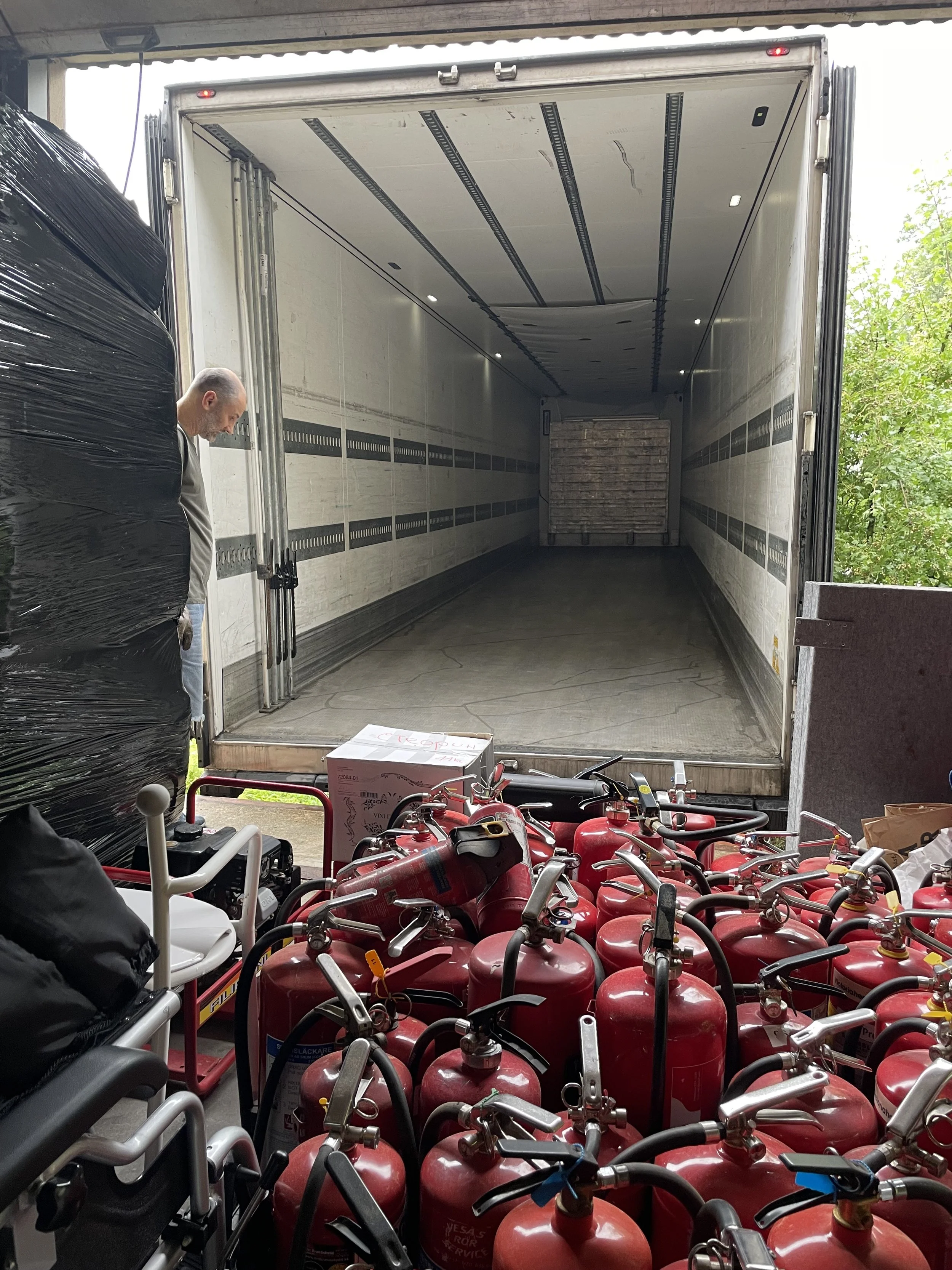 Stort tack till Oleksander som kör denna jätte hela vägen från Ukraina och tillbaka. Många hjältar i den här ekvationen. Persson Gunita som roddar skeppet så förtjänstfullt, alla ni här omkring som stöttar på olika sätt och Presto som skänkt 19 ton brandsläckare. Hur många brandsläckare det är får ni googla själva.